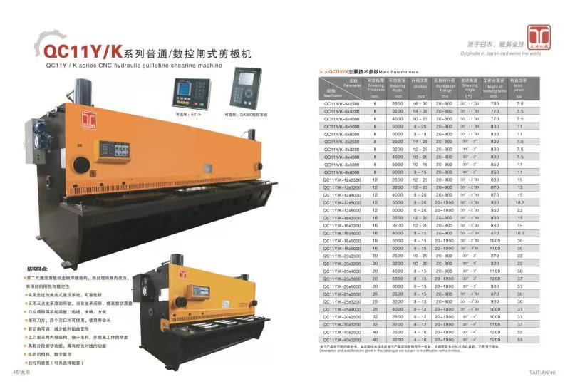 產(chǎn)品介紹:整機(jī)采用全鋼板焊接結(jié)構(gòu),并經(jīng)整體回火處理 上刀架在液壓缸的驅(qū)動(dòng)下,向下做直線運(yùn)動(dòng) 上下刀片均為矩形刀片,刀口間隙可以手動(dòng)或電動(dòng)快速調(diào)整 剪切行程由時(shí)間繼電器控制,電控調(diào)整剪切角 后擋料的前后方向運(yùn)行,由電機(jī)帶動(dòng),并由電子數(shù)顯表顯示,同時(shí)具有微調(diào)功能 關(guān)鍵電氣件均為國際***產(chǎn)品 透過可視式的安全防護(hù)欄,操作者可以通過燈光對(duì)線裝置進(jìn)行輕松剪切,安全又高效 用戶可選配氣動(dòng)后托料裝置。 QC11Y系列