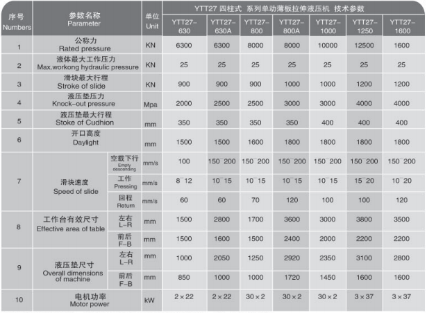 產(chǎn)品介紹:性能特點(diǎn):計算機(jī)優(yōu)化結(jié)構(gòu)設(shè)計,為四柱式結(jié)構(gòu):四柱式結(jié)構(gòu)簡單、經(jīng)濟(jì)、實(shí)用;液壓控制系統(tǒng)采用插裝閥集成系統(tǒng),動作可靠、使用壽命長、液壓沖擊小、減少了連接管路與泄漏點(diǎn),液壓集成系統(tǒng)采用獨(dú)立控制單元;采用按鈕集中控制,具有調(diào)整、半自動(半自動可分定程單次和定